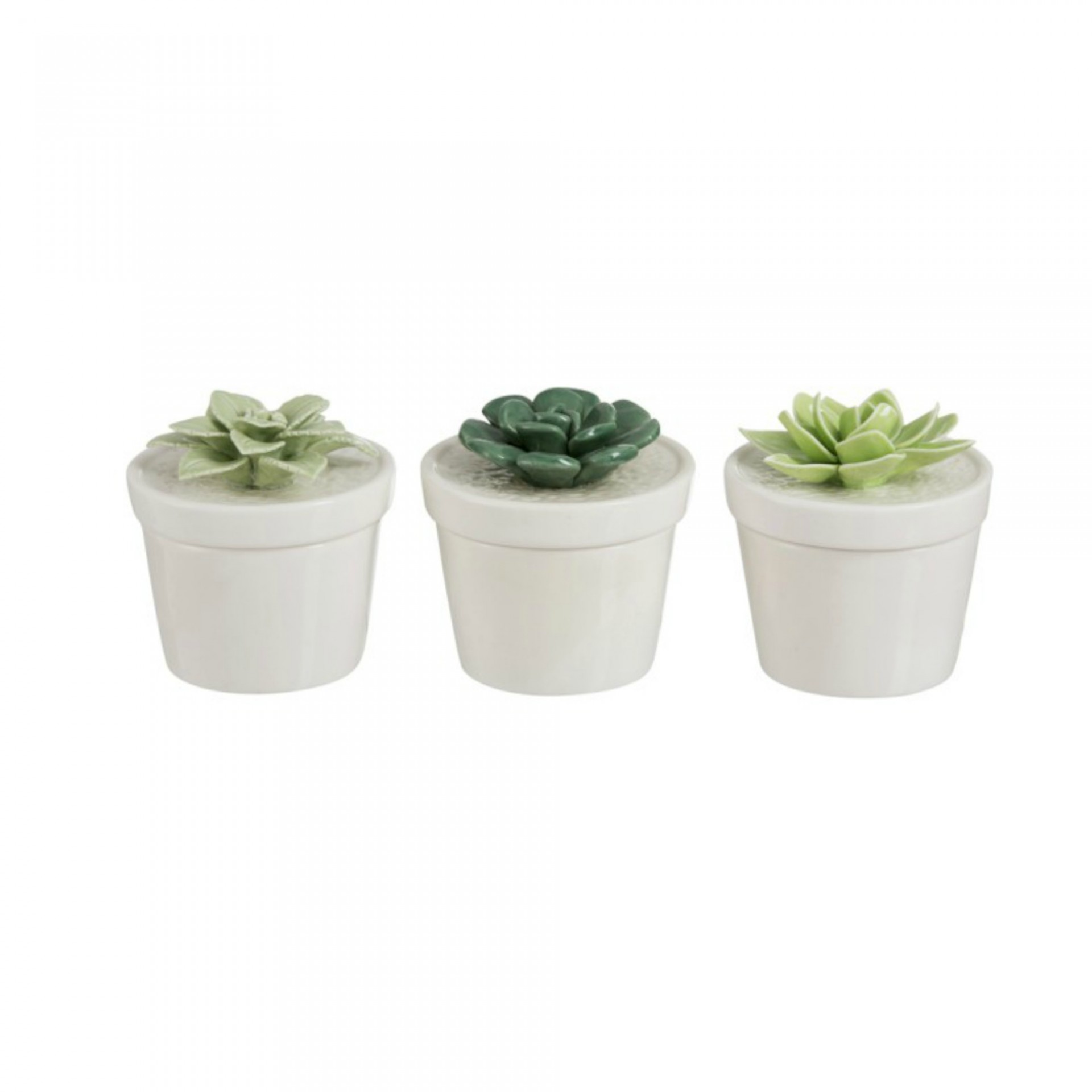 Home Decoração Caixa Cerâmica Caixa Cerâmica 1 unidades em stock | SKU: 83709 Figura 1 2 3 6,54 € 10,90 € Desconto de %. IVA incluído. Winter Sale Desconto imediato de 4,36 € (40%) neste produto. Válido de 21 de Janeiro de 2026 às 20:30 até 1 de Março de 2026 às 00:00. Comprar Contactar Adicionar à wishlist Caixa em cerâmica com tampa em formato de suculentas. Três modelos disponíveis. Deverá ser indicado o modelo pretendido em observações. Sujeito a confirmação. Medidas: 10x10,5x10,5cm Partilhar