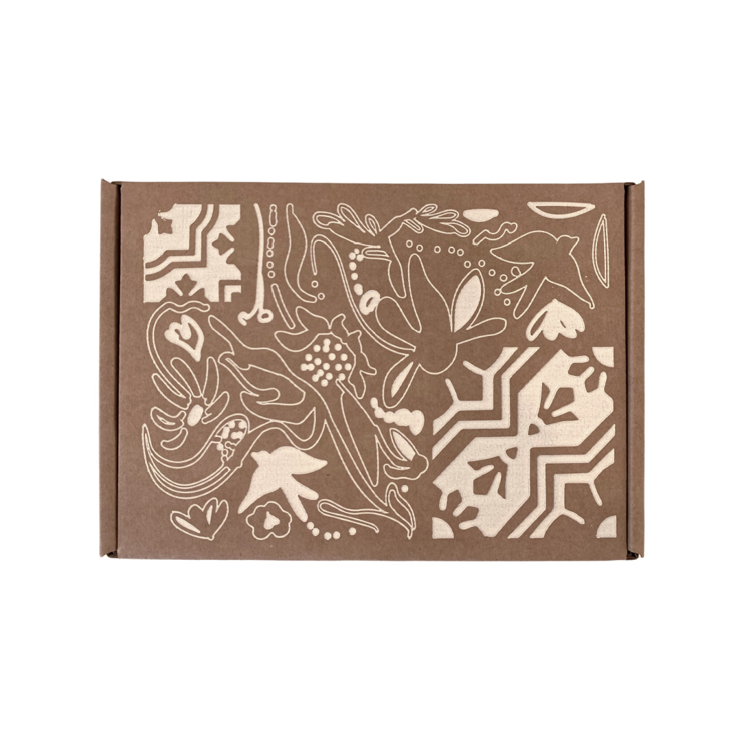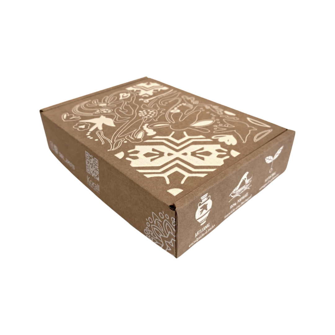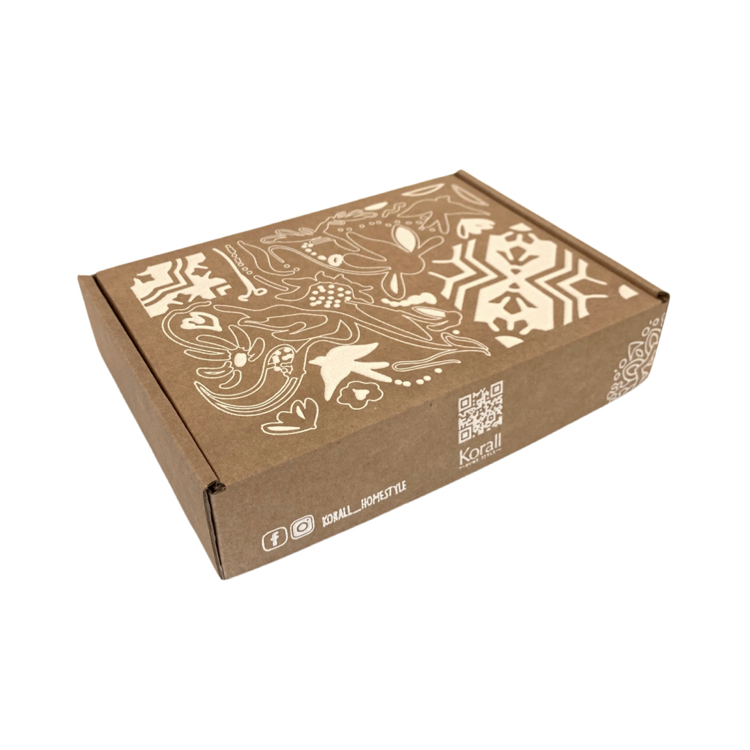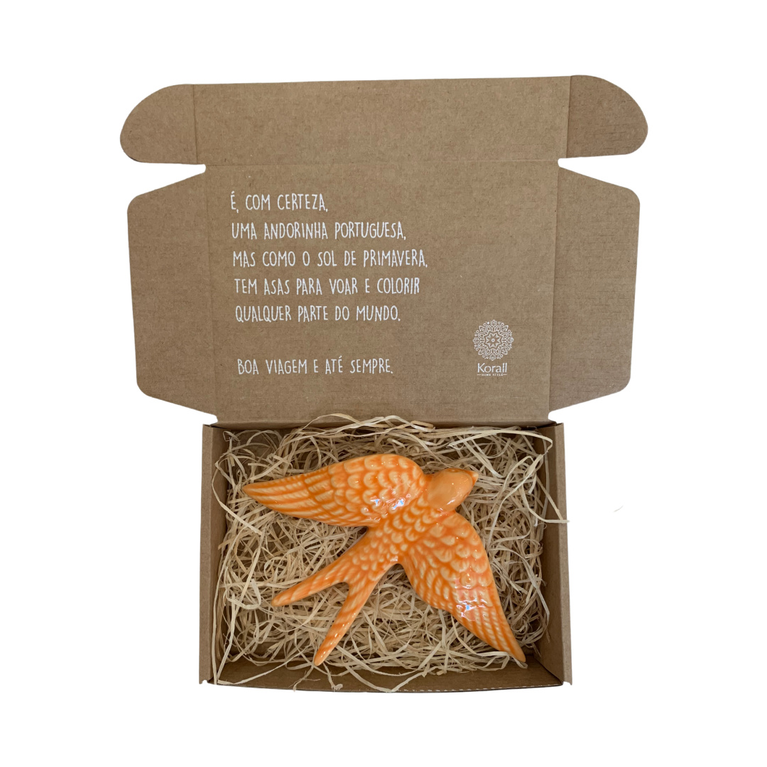 Caixa com Andorinha Grande com design exclusivo, feita em cartão à cor natural e com impressão a branco, especialmente concebida para uma andorinha em cerâmica de tamanho grande.