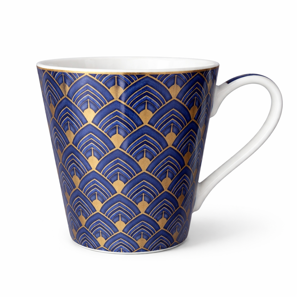 Caneca em Porcelana com Padrão Azul e Dourado