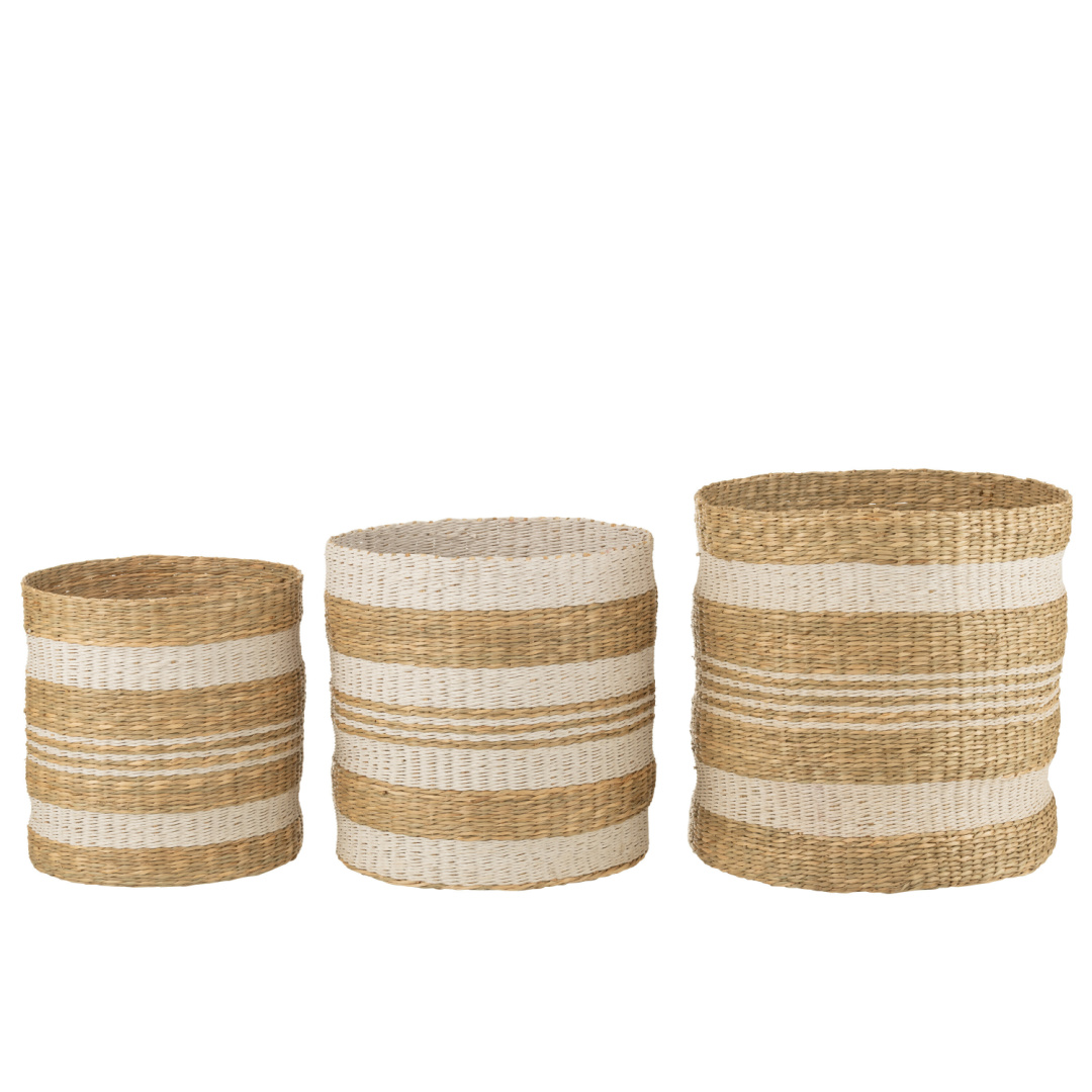 Home Jarras | Vasos | Potes Cesto Riscas Cesto Riscas 1 unidades em stock | SKU: 31581.1 Tamanho Pequeno Médio Grande 40,00 € Desconto de %. IVA incluído. Comprar Contactar Adicionar à wishlist Cesto em fibra natural com riscas brancas, disponível em três tamanhos. Grande - 39 x 39 x 40cmMédio - 36 x 36 x 36cmPequeno - 31 x 31 x 33cm Tags verga Partilhar
