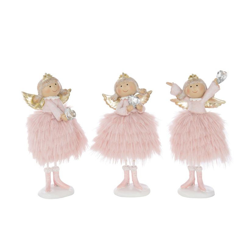Estas adoráveis figurinhas de anjo em tons suaves de rosa trazem um toque de doçura e encanto à decoração. Com detalhes delicados — asas douradas, saias em tecido fofo e um pequeno coração brilhante nas mãos — são perfeitas para dar um ar terno e mágico à tua casa nesta época especial.