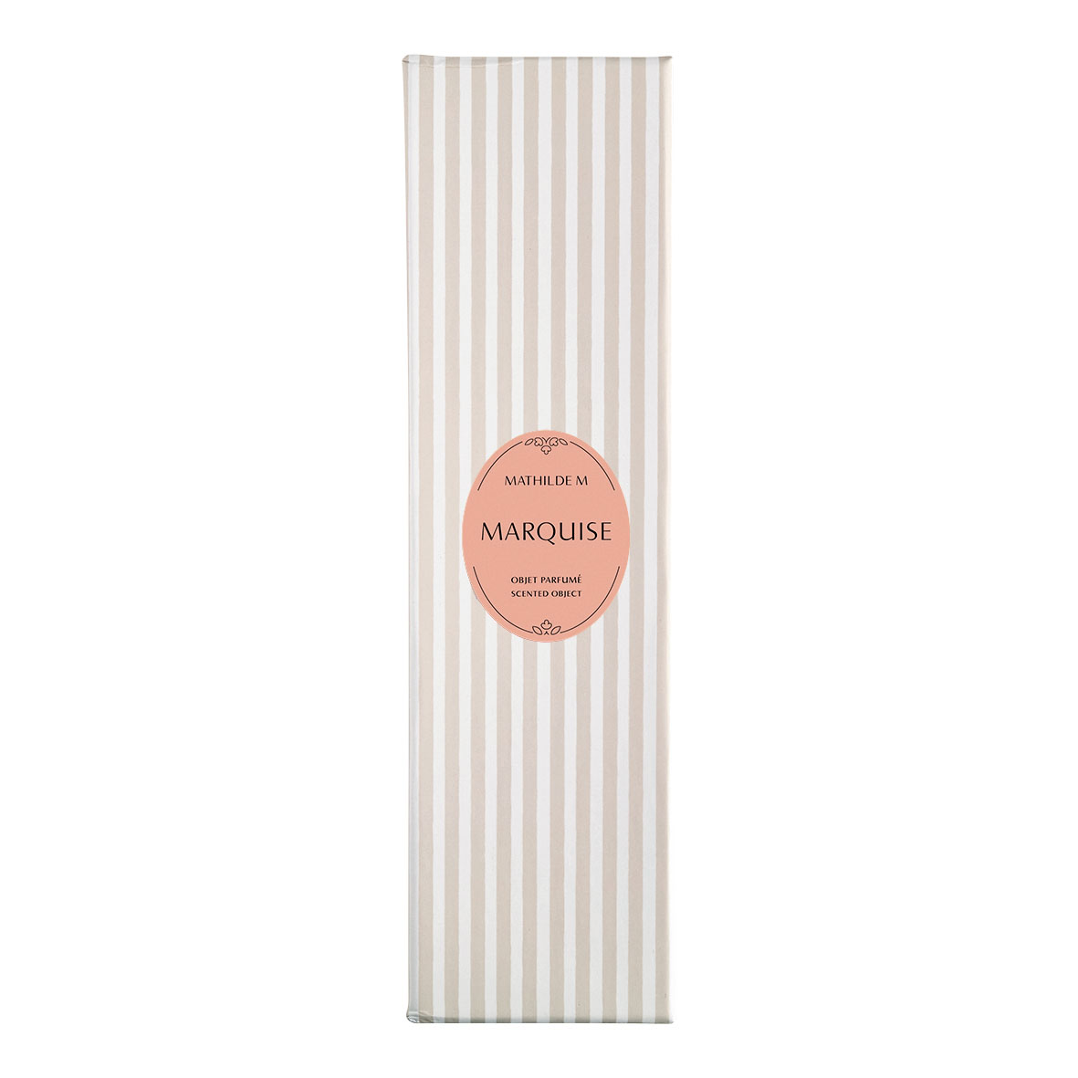 Inspirado nos mais belos enfeites, este maravilhoso pompom, adornado com uma decoração de gesso perfumado meticulosamente esculpida à mão, difunde seu doce aroma onde quer que seja pendurado: em maçanetas, gavetas ou até mesmo armários.