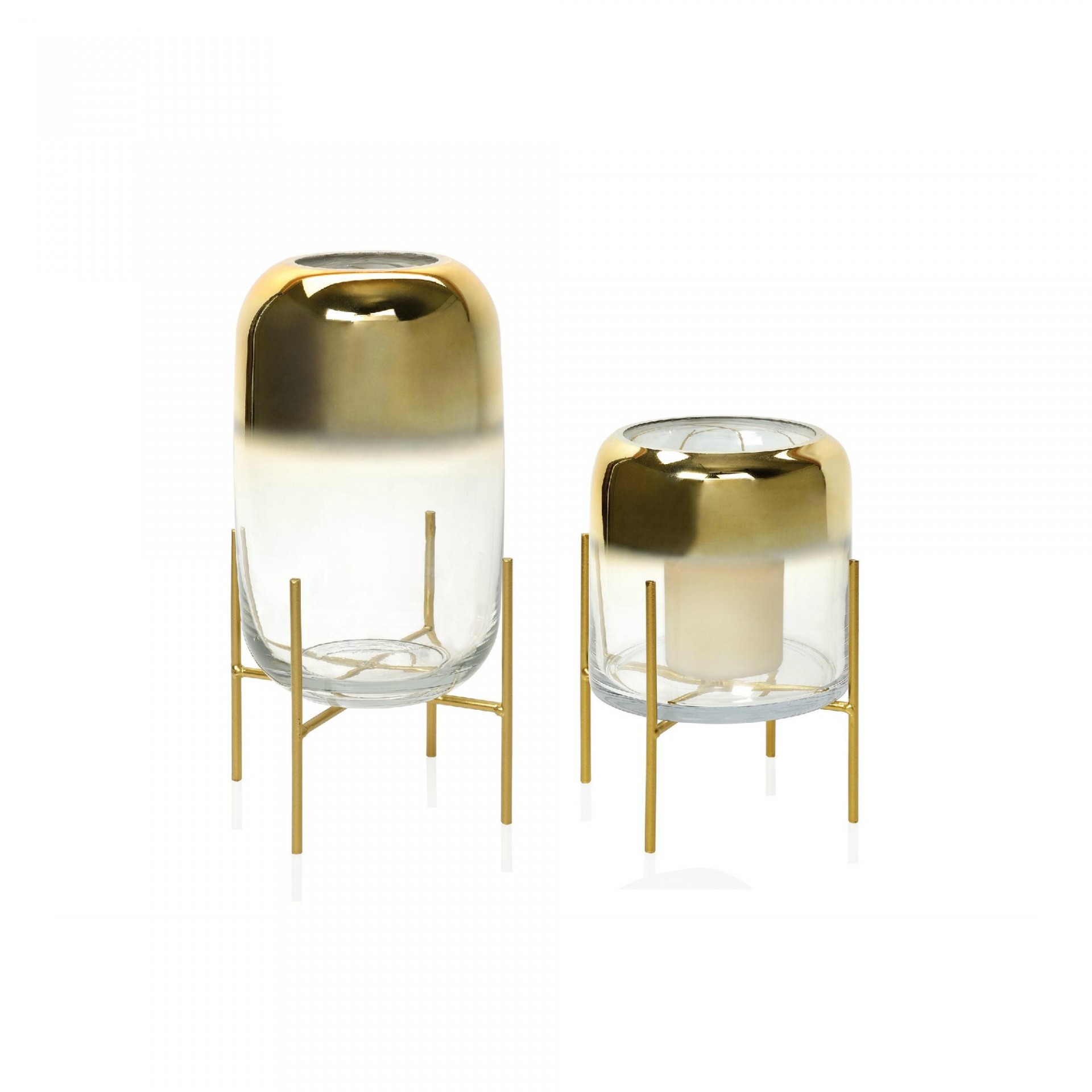 Home Decoração Porta-velas Porta-velas SKU: 19179 Tamanho Grande Pequeno 31,50 € Desconto de %. IVA incluído. Comprar Contactar Adicionar à wishlist Porta-velas em vidro translúcido com rebordo em dourado e suporte em metal dourado. Medidas: Grande - Ø17,5 X 32cm Pequeno - Ø17,5 X 22cm Partilhar