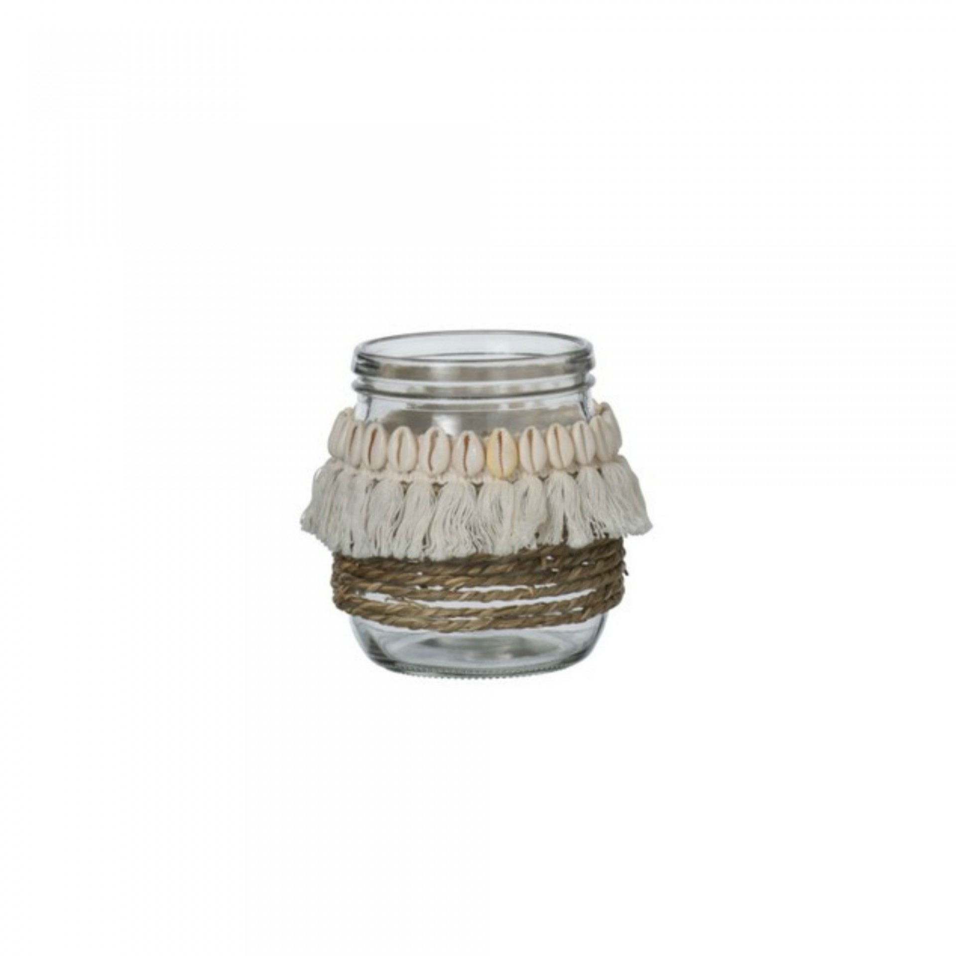 Home Decoração Porta-velas Porta-velas SKU: 93651 6,54 € 10,90 € Desconto de %. IVA incluído. Winter Sale Desconto imediato de 4,36 € (40%) neste produto. Válido de 21 de Janeiro de 2026 às 20:30 até 1 de Março de 2026 às 00:00. Comprar Contactar Adicionar à wishlist Porta-velas em vidro com aplicação de corda, franjas em algodão e conchas naturais. Medidas: 12x12x12cm Partilhar
