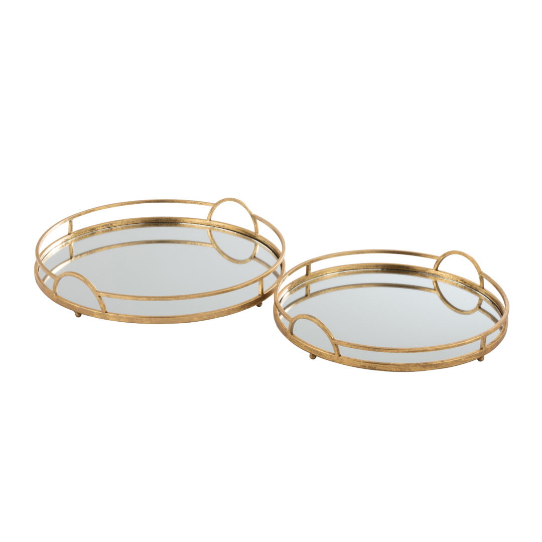 Home Decoração Tabuleiro Tabuleiro 1 unidades em stock | SKU: 5699.2 Tamanho Grande Pequeno 36,00 € 60,00 € Desconto de %. IVA incluído. Winter Sale Desconto imediato de 24,00 € (40%) neste produto. Válido de 21 de Janeiro de 2026 às 20:30 até 1 de Março de 2026 às 00:00. Comprar Contactar Adicionar à wishlist Tabuleiro redondo com base espelhada, em metal dourado envelhecido. Dois tamanhos disponíveis. Grande - 46 x 46 x 5,5cm Pequeno - 40 x 40 x 5,5cm Tags douradometal Características Partilhar