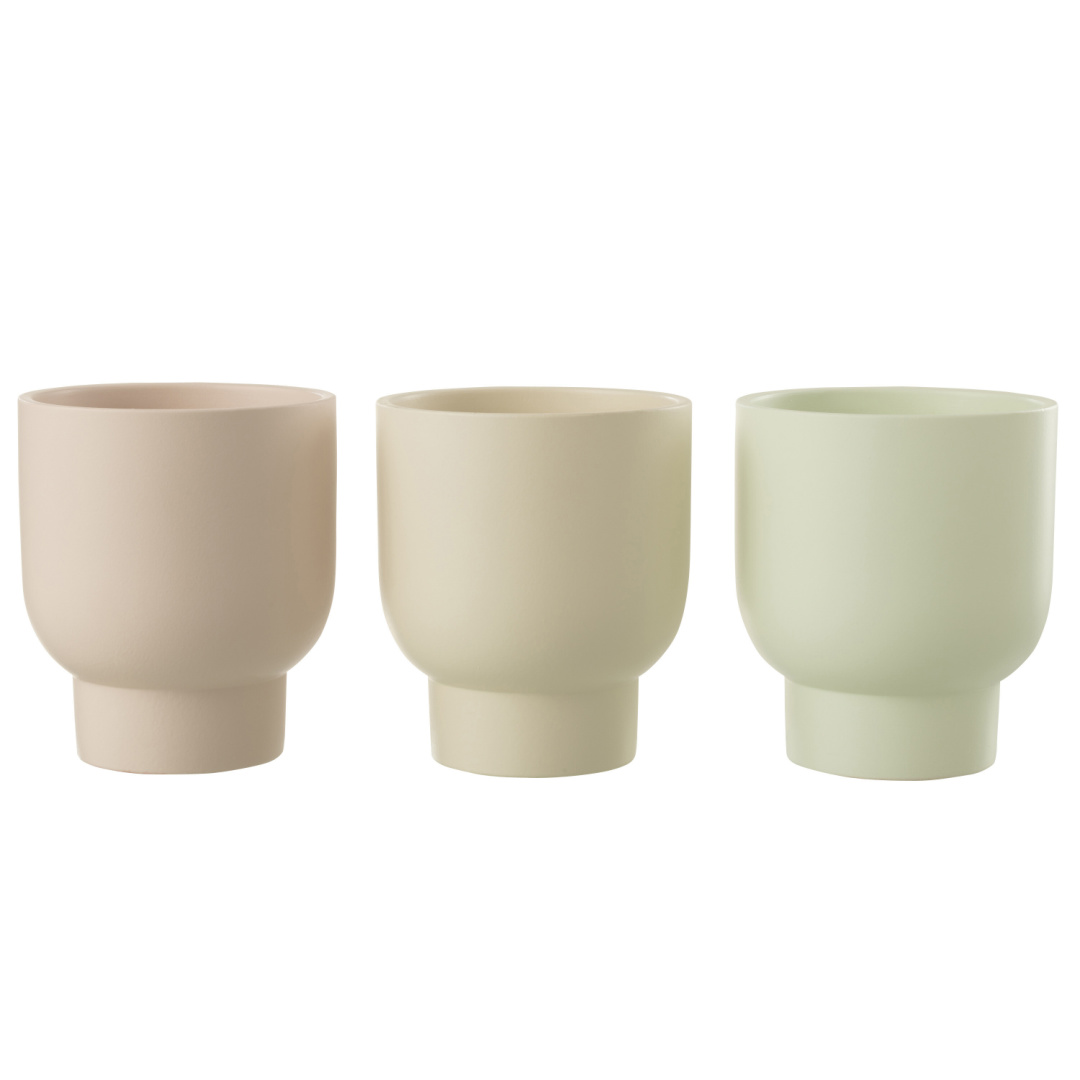 Home Jarras | Vasos | Potes Vaso Ying Vaso Ying 2 unidades em stock | SKU: 34417 Cor Rosa Bege Verde Água 15,90 € Desconto de %. IVA incluído. Comprar Contactar Adicionar à wishlist Vaso Ying em cerâmica em três tons pastel, rosa, verde água e bege. Acabamento mate. Medidas: 16 x 16 x 18,5 cm Tags cerâmica Partilhar